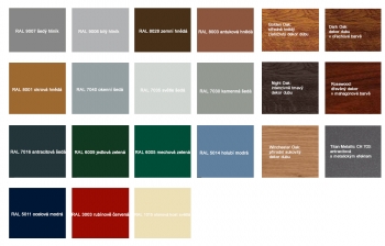 Příplatek: lakování vrat do barvy dle vzorníku, cena od 500 Kč/m2 plochy vrat.